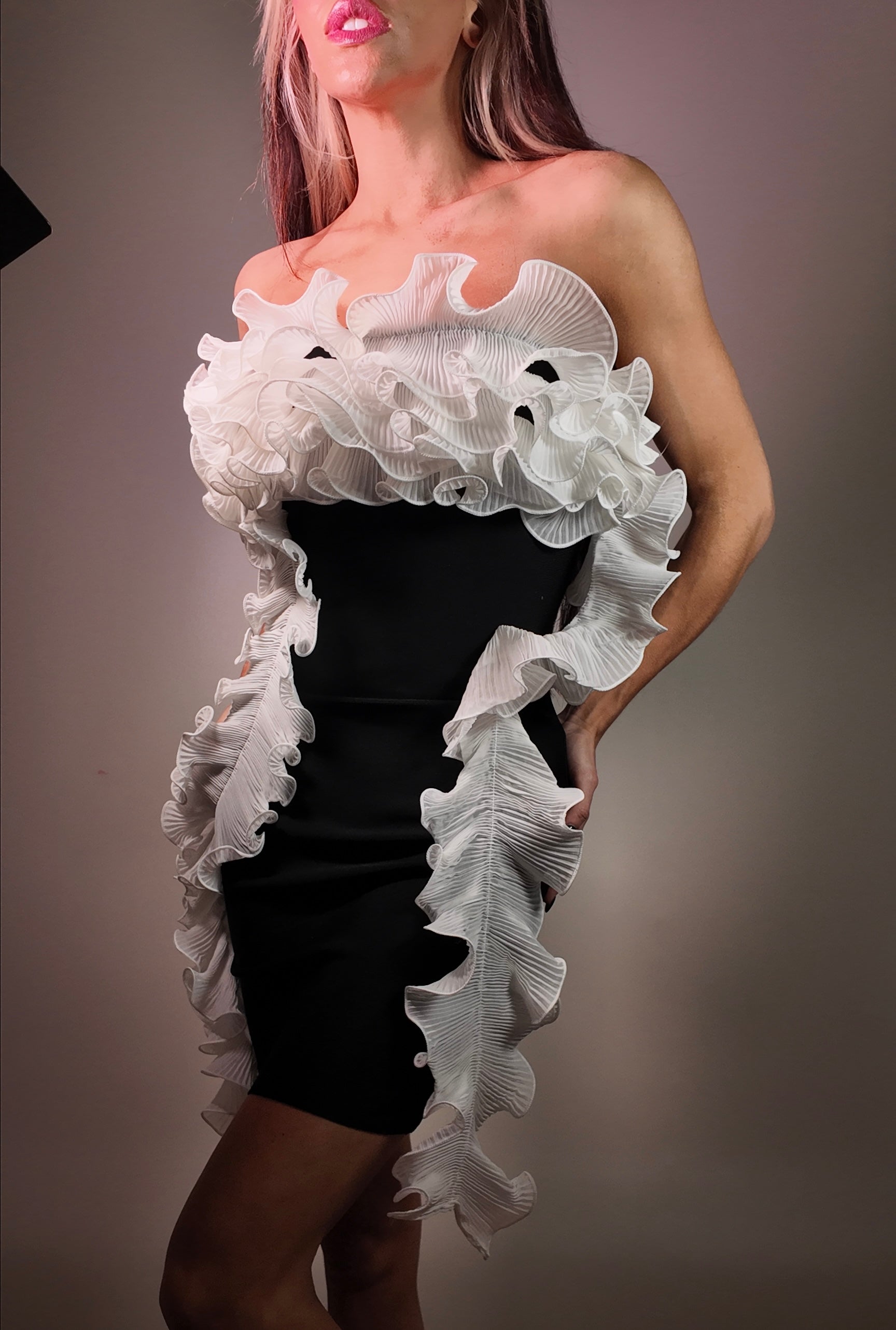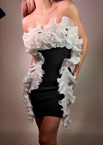 Ruffle Black and White Small Bandage Dress