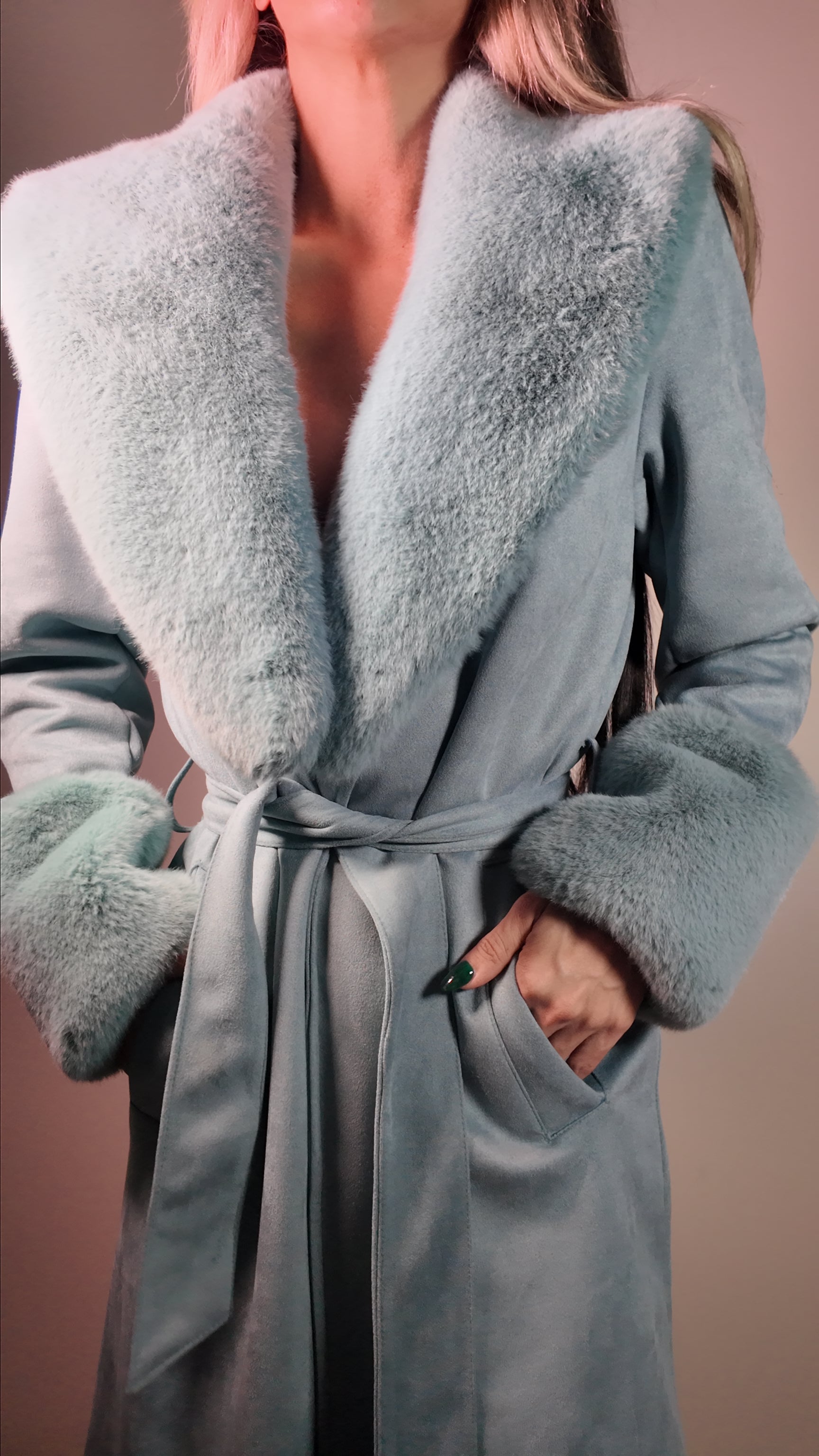 Baby Blue Faux Fur Waist Adjustable Coat Small/Medium