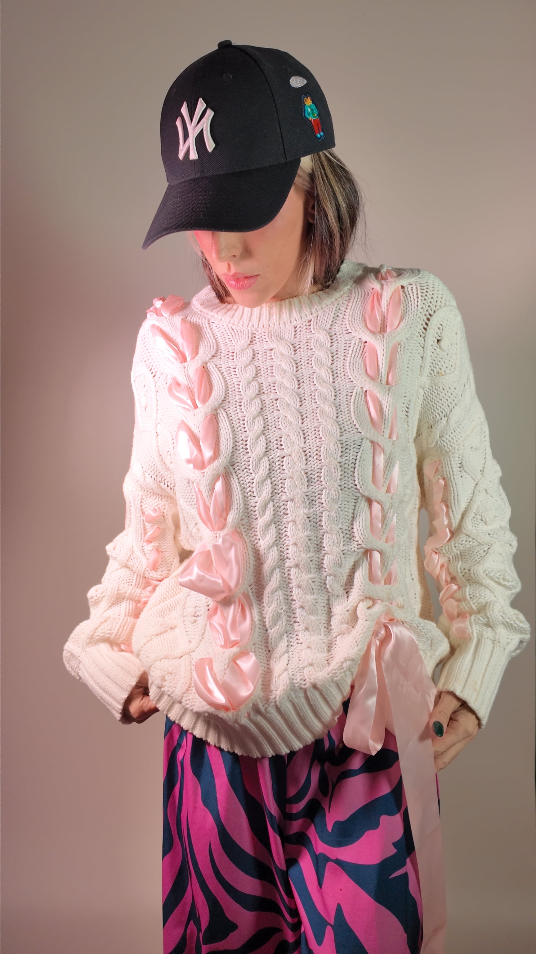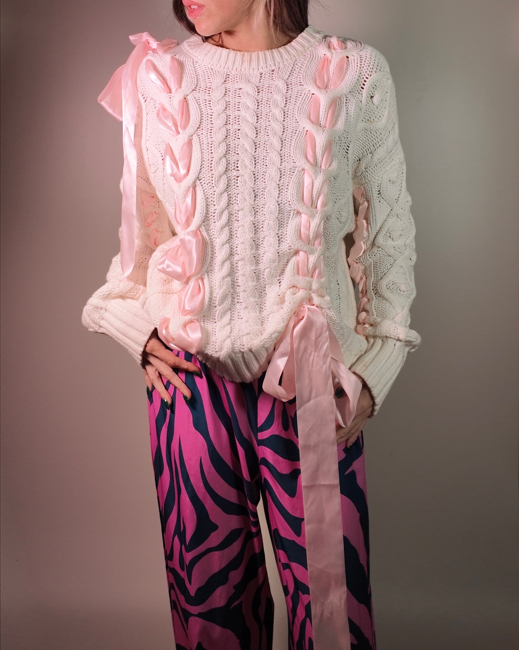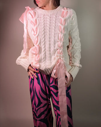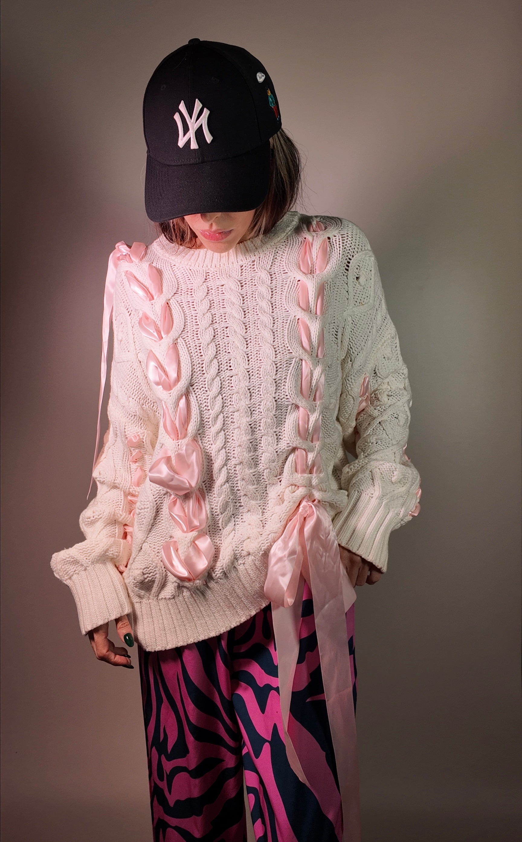 Oversize 1X Knit Sweatshirt with Satin Bow